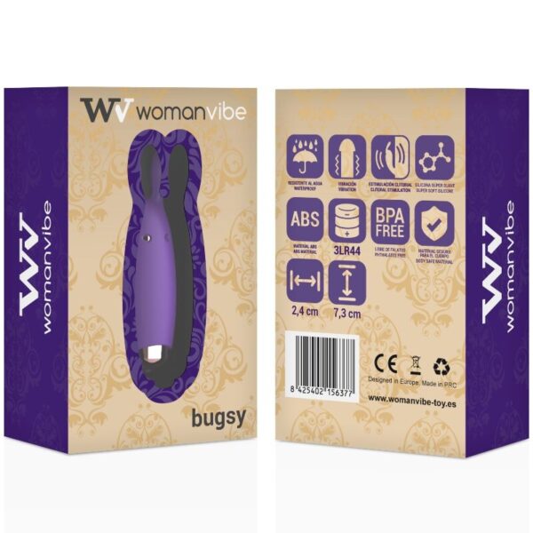 Imagen del artículo erótico WOMANVIBE - BUGSY ESTIMULADOR RABBIT SILICONA de WOMANVIBE en la sección JUGUETES BIENESTAR |Vibradores|Mini vibradores de Millenial Sexshop.