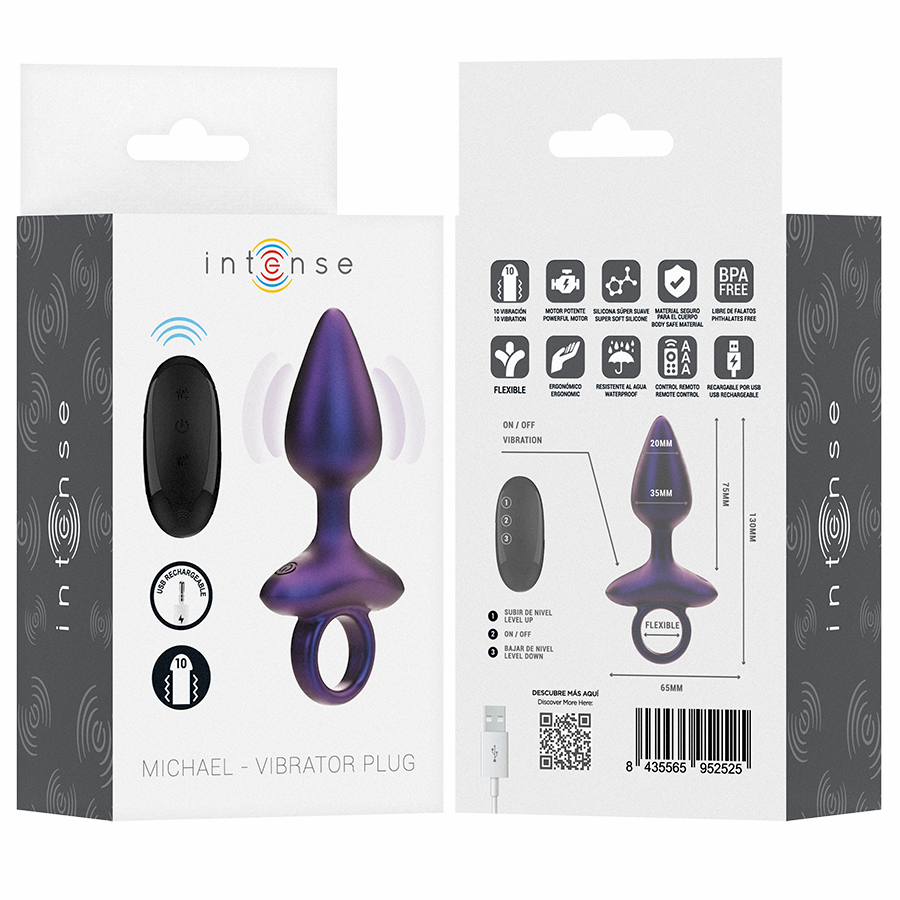 MICHAEL de la marca INTENSE es un plug anal vibrador diseñado para maximizar el placer y ofrecer una experiencia única en tus momentos íntimos.